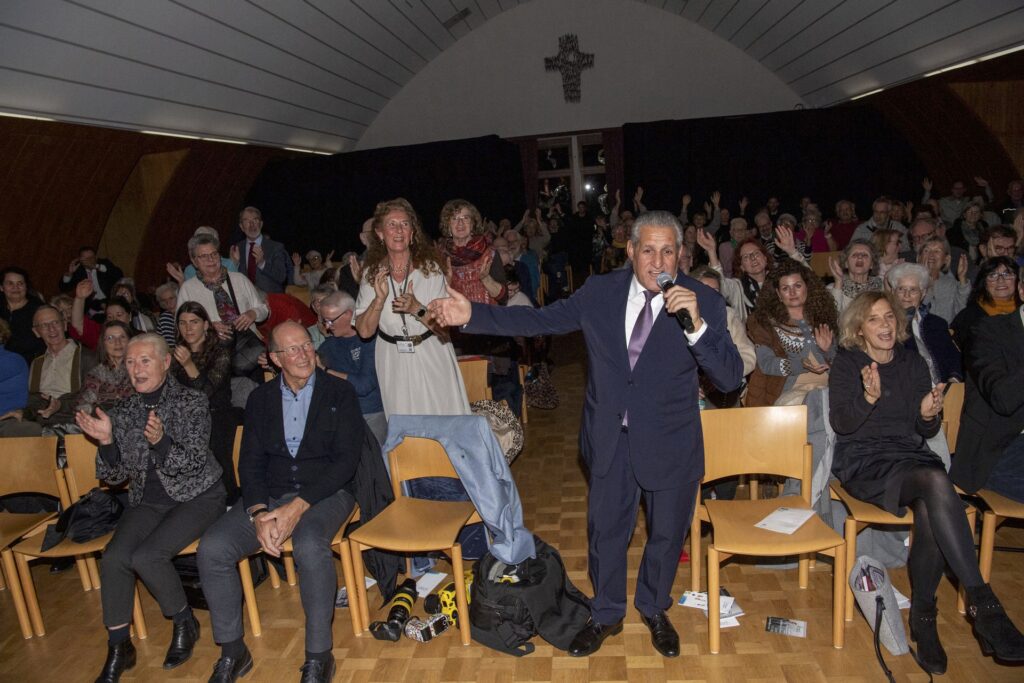 Das Konzert mit Django Reinhardt in der Aula des Johannes-Gymnasiums war sowohl musikalisch als auch finanziell für die Friedenskinder ein großer Erfolg. Mit seinen 11 Musikern lief Django zu Höchstform auf; geboten wurde Swing vom Feinsten. Am Ende gab es jubelnden Applaus und das gute Gefühl, einen tollen Abend mit einem hilfreichen Engagement verbunden zu haben. Nach der Pause konnte Frau Monika Sauer, Präsidentin des Sportbunds Rheinland und Lotto-Repräsentantin, einen Scheck von Lotto über 7.000,- € an unseren Vorsitzenden Bernd Wangelin überreichen. Vielen Dank an Lotto, an Django Reinhardt und an Rudolf Loch, der als Schulleiter des „Johnny“ uns seine Aula überlassen hat.