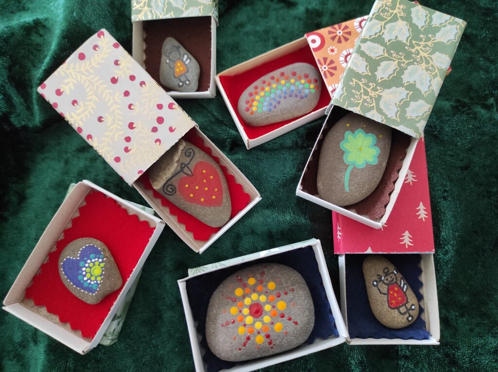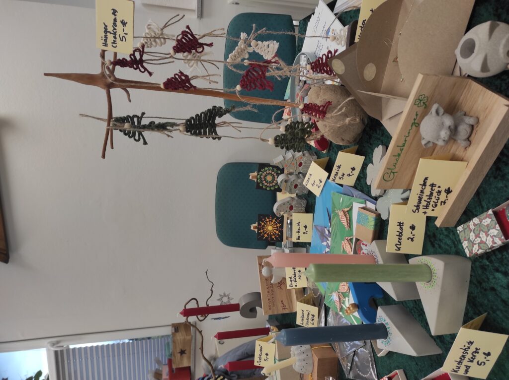 an allen drei Standorten können Sie Weihnachtskarten, Origamisterne, Weihnachtsbaumschmuck, kleine Geschenke zu Nikolaus oder Weihnachten, weihnachtliche Dekorationen und vieles mehr erwerben. Wie gewohnt ist alles handgefertigt. Der Erlös fließt natürlich wieder in die Projekte der „Friedenskinder“.