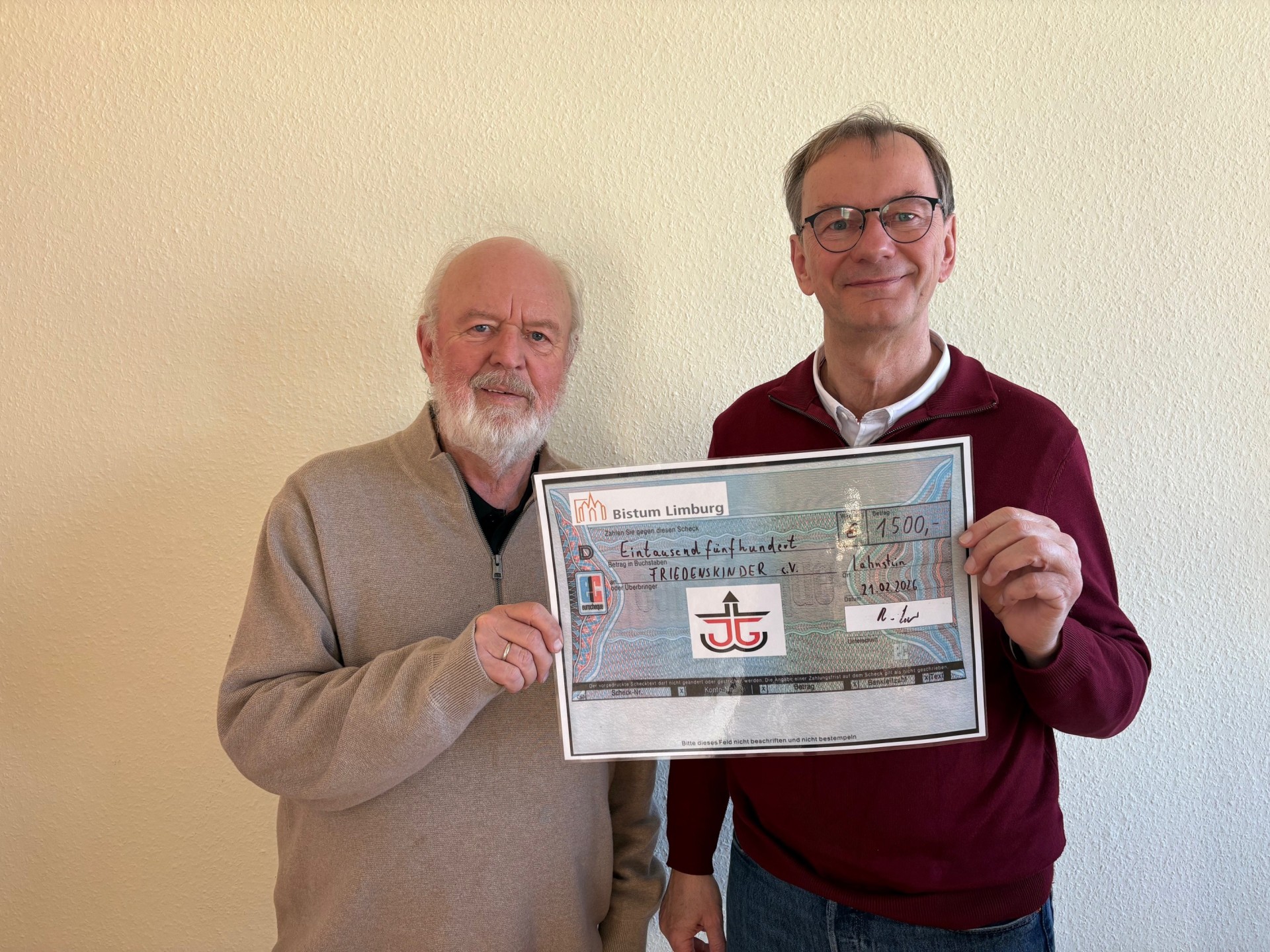 08.03.2026 Johnny-Spende aus Weihnachtskonzert08.03.20261.500 € für die Friedenkinder von der Johnny-Schulgemeinschaft aus LahnsteinMehr